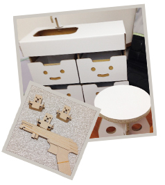 協明紙器株式会社では、いろいろなはこをつくっています。配達梱包用ダンボールからラッピング用ケースまで幅広いはこがございます。